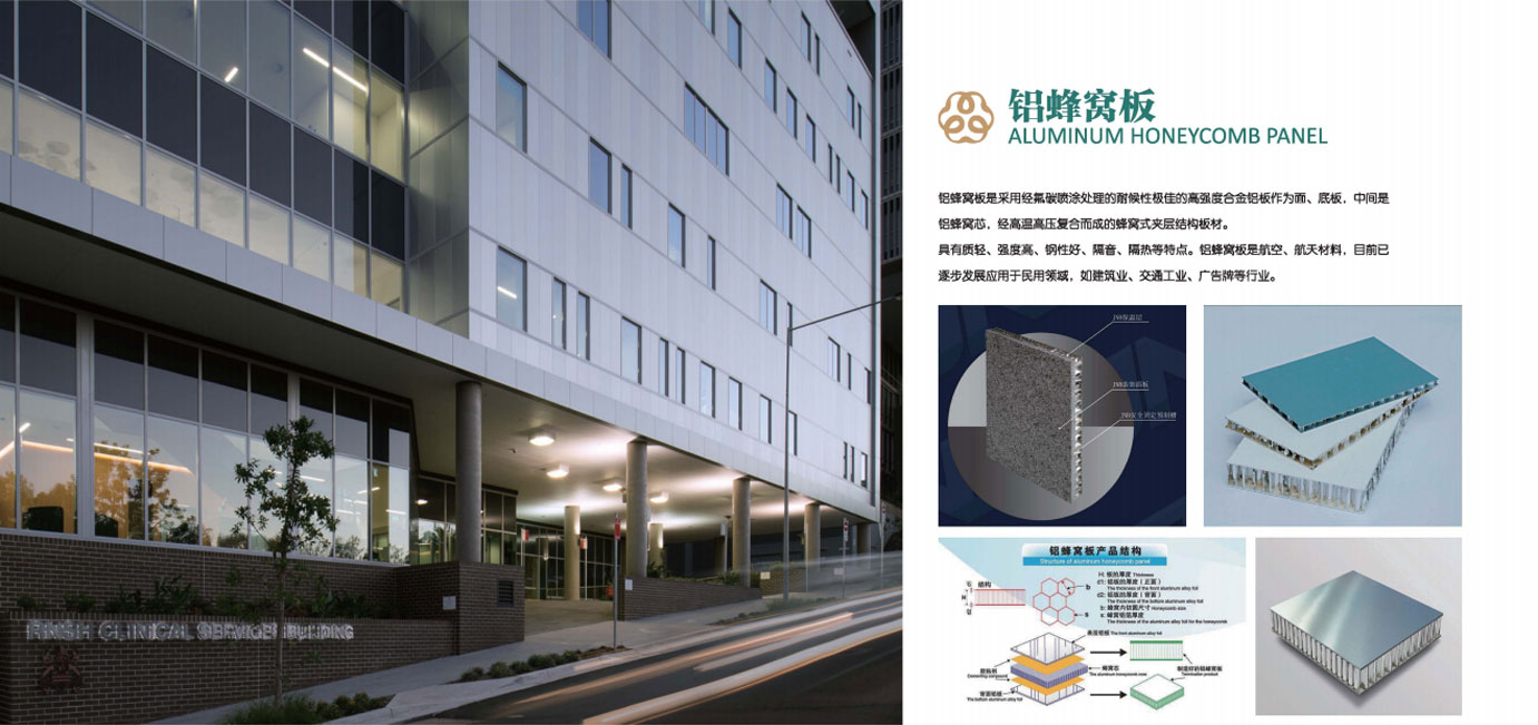氟碳鋁單板選用優(yōu)質(zhì)鋁合金板材為基材,經(jīng)數(shù)控成型,在其表面涂層處理的一種新型裝飾幕墻材料。